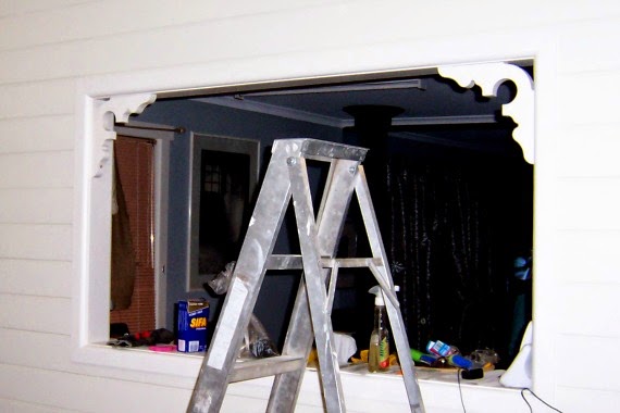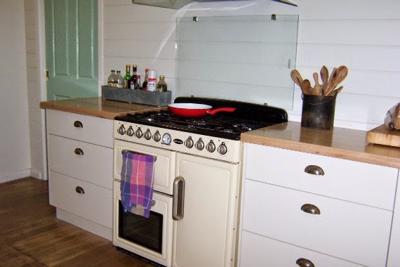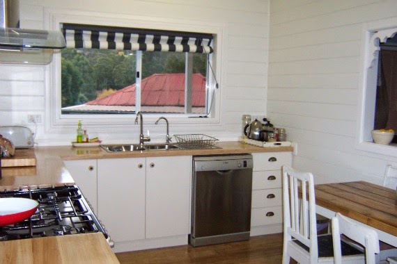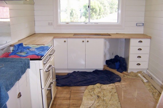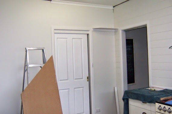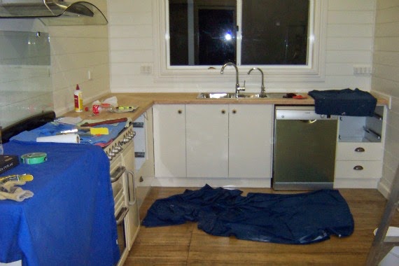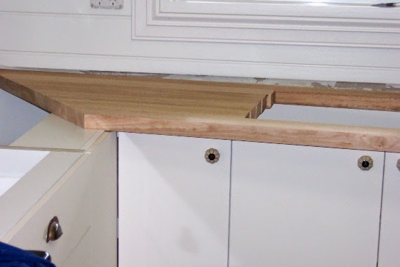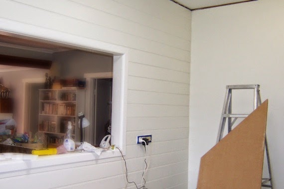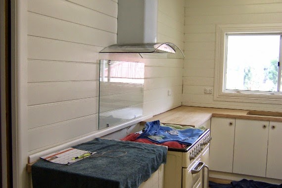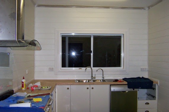 When we were doing the kitchen and Handyman was lining walls with pine, I asked him to move the power point and phone jack so that they were closer and neater.
