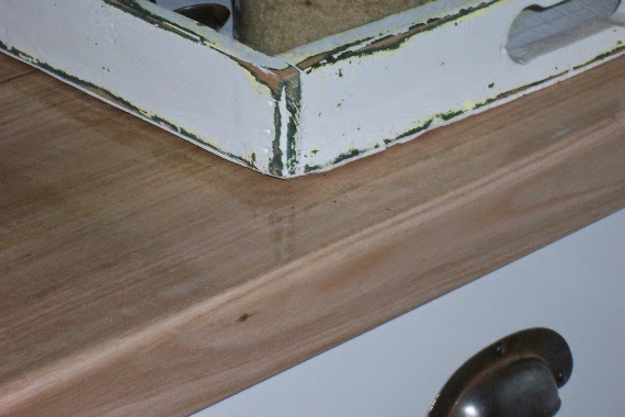 Since the idea was to hide the mess behind a door, I cut a hole in the drawer… badly. Necessitating the addition of trim to neaten it up. eh. That part will be hidden most of the time.