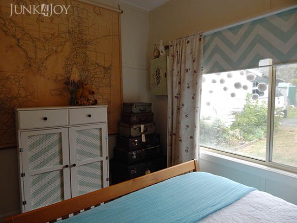Meanwhile the coffee table is a craft station. I still haven’t recovered the dark brown cushions, I want to cheer the place up a bit. I did make the round cushion cover removable using fabric scraps I had on hand so it can be washed.