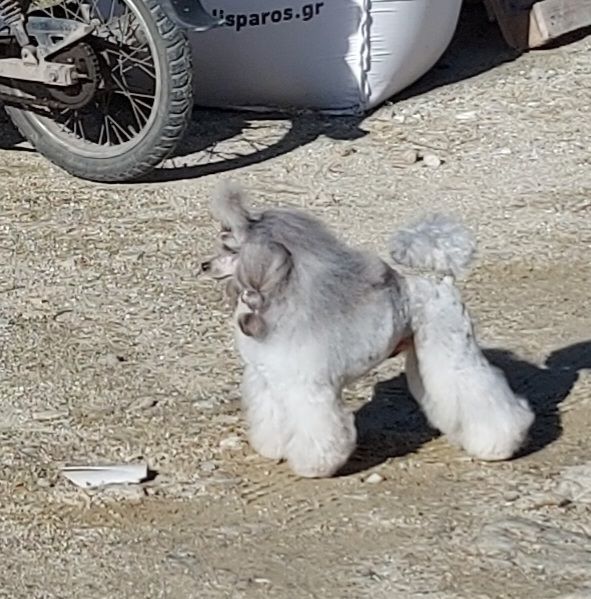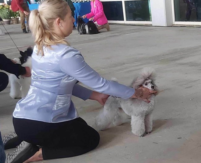 Under FCI, there are 4 poodle sizes – toy, dwarf, miniature and standard. A toy is up to 28cm at the shoulders. Vegas is 30-31cm. So, he has been reclassified and shown as a dwarf. You can do that in FCI, not in Australia or the USA from what I know. There, there is a gap which oversize toys fall into and disappear, unable to be shown.