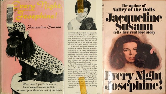 Where did my love affair with poodles begin? At 13 yrs old when I read Jacqueline Suzanne’s book Every Night Josephine. The book I had was the one with the cover on the right. Wish I’d kept that book…