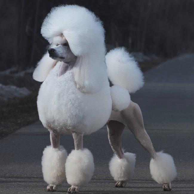 Another option is the historially correct continental (or in Vincent’s case it would be more of a non-shaved leg version), but I dislike it very much. I find it the most inelegant of all poodle trims.