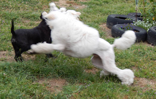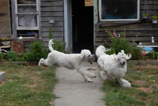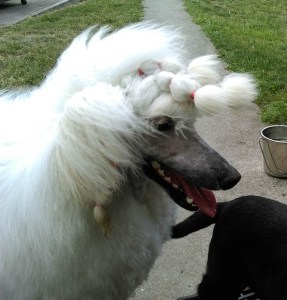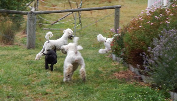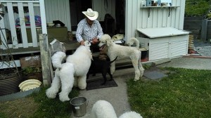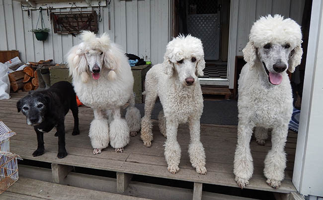 Its actually quite handy, cause by the time Zeph is ready for a groom so are Montana and Romeo. Mary comes up and together we groom all three poodles in a production line kind of arrangement. That way they’re all clean at the same time.