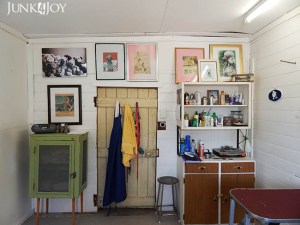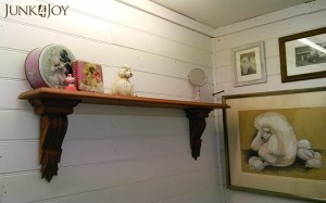 In the end I went for quick and easy. I grabbed a bit of chippy old skirting board I had in the shed, drilled holes in it and jammed in some really big nails. I added a cool chippy green-blue door thingy. Just for fun I painted the heads of the nails pale green-blue to match.
