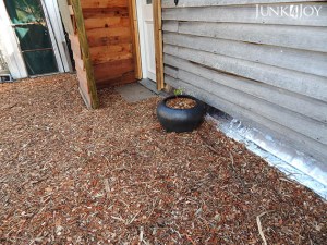 One good thing came of it I guess… when I had to kneel on that manky old carpet piece that’s been our outside mat forEVER, I realised just how grimey it was. I actually went and cut another piece of old carpet and made a newer/cleaner outdoor mat.
