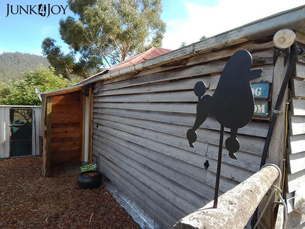 Before Christmas I’d planted some lettuce and spinach in a rusty old washing machine tub and placed it and my basil in a rusty ammo box in part of the garden which the dogs had excavated. I placed a big galvanised watering can and some yellow tractor springs there too. It worked. No more digging and destruction in that spot.