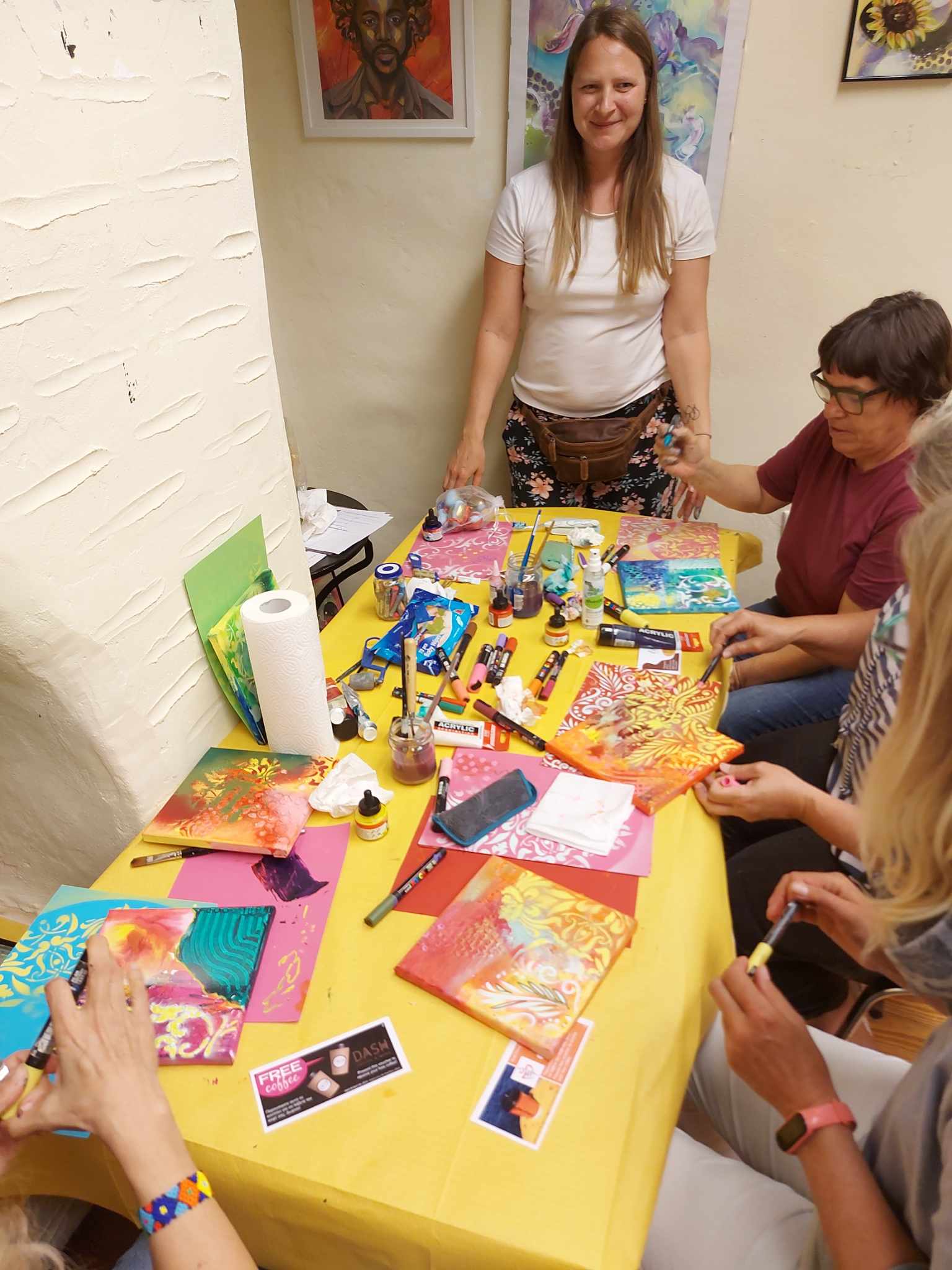 We invited creatives from different genres to join us and set up in a beautiful space owned by the municipality. The plan was simple – 6-7pm meet and greet the artists and check out their work. 7-9pm FREE mini workshops. Buy/donate money to charity.