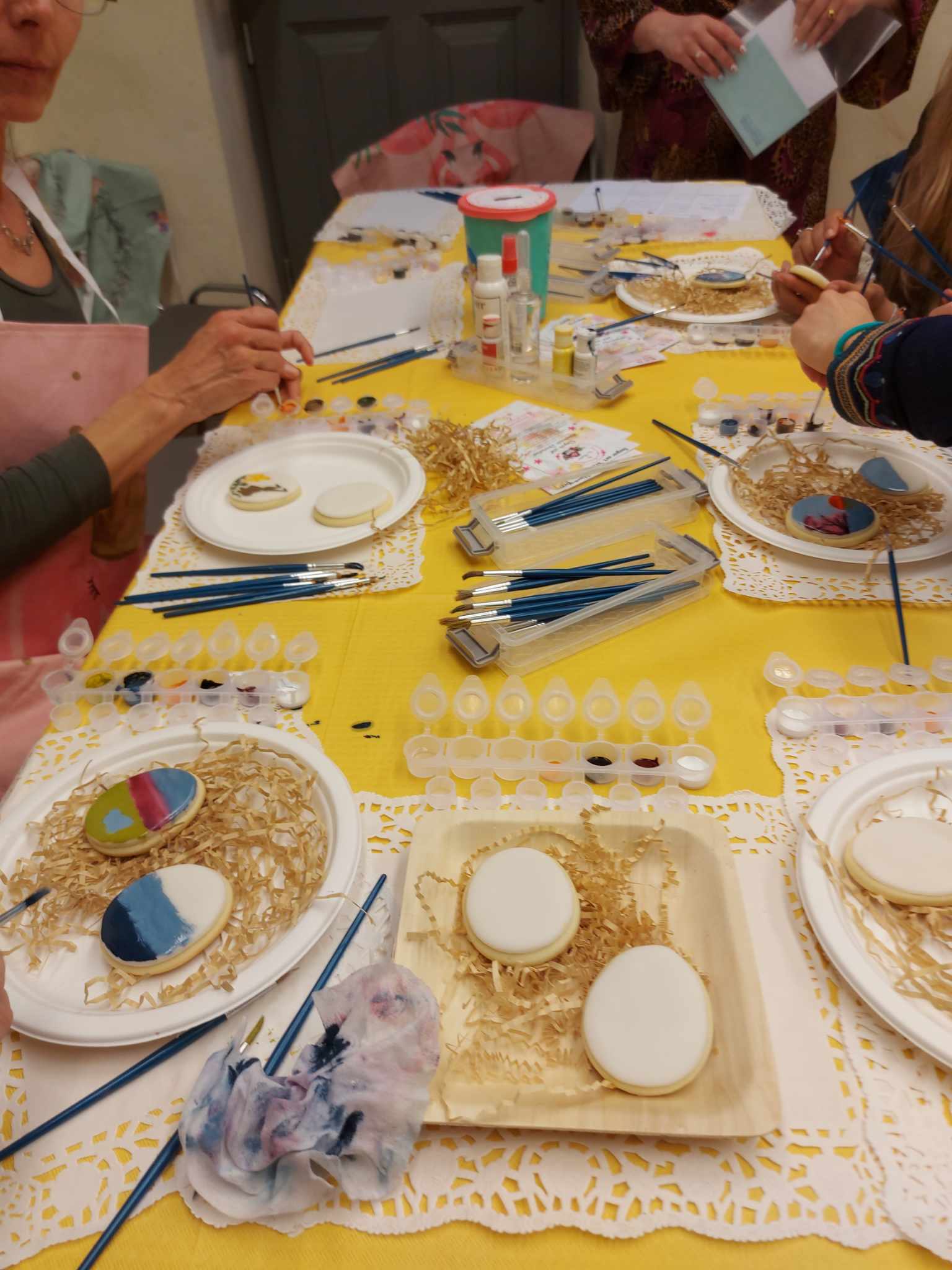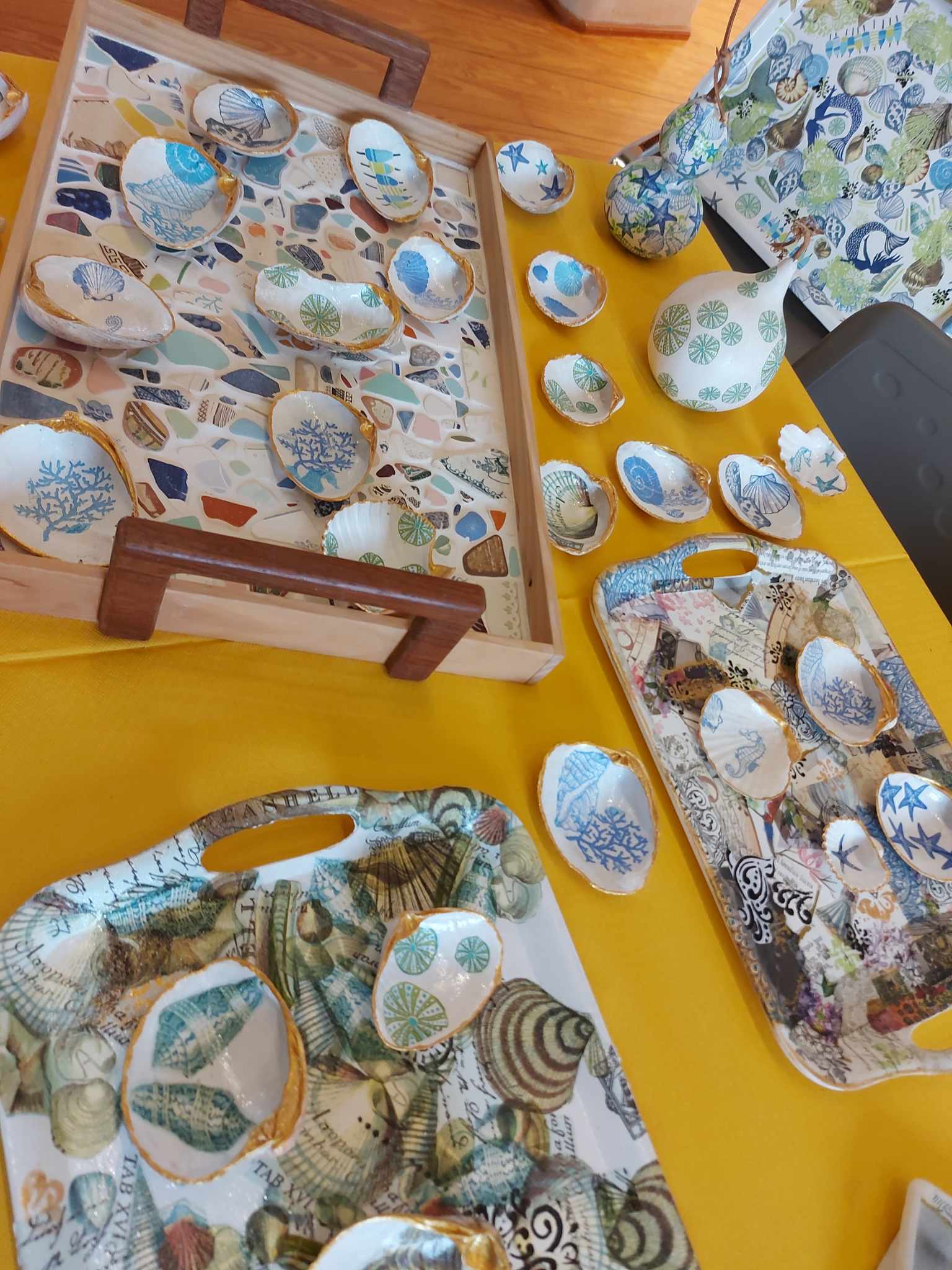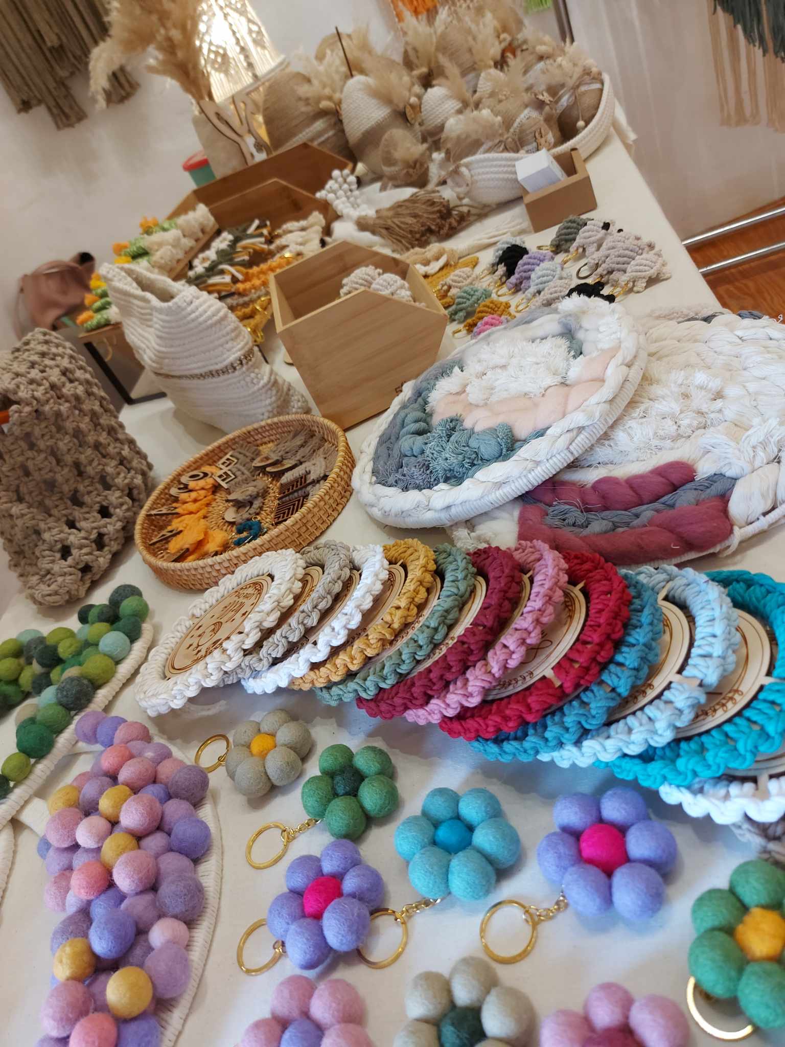 We had people who did collage, decoupage, soaps and lotions, jewelry, weaving, watercolour, mixed media, macrame, rock painting, fimo sculpture, mandalas and cookie decorating.