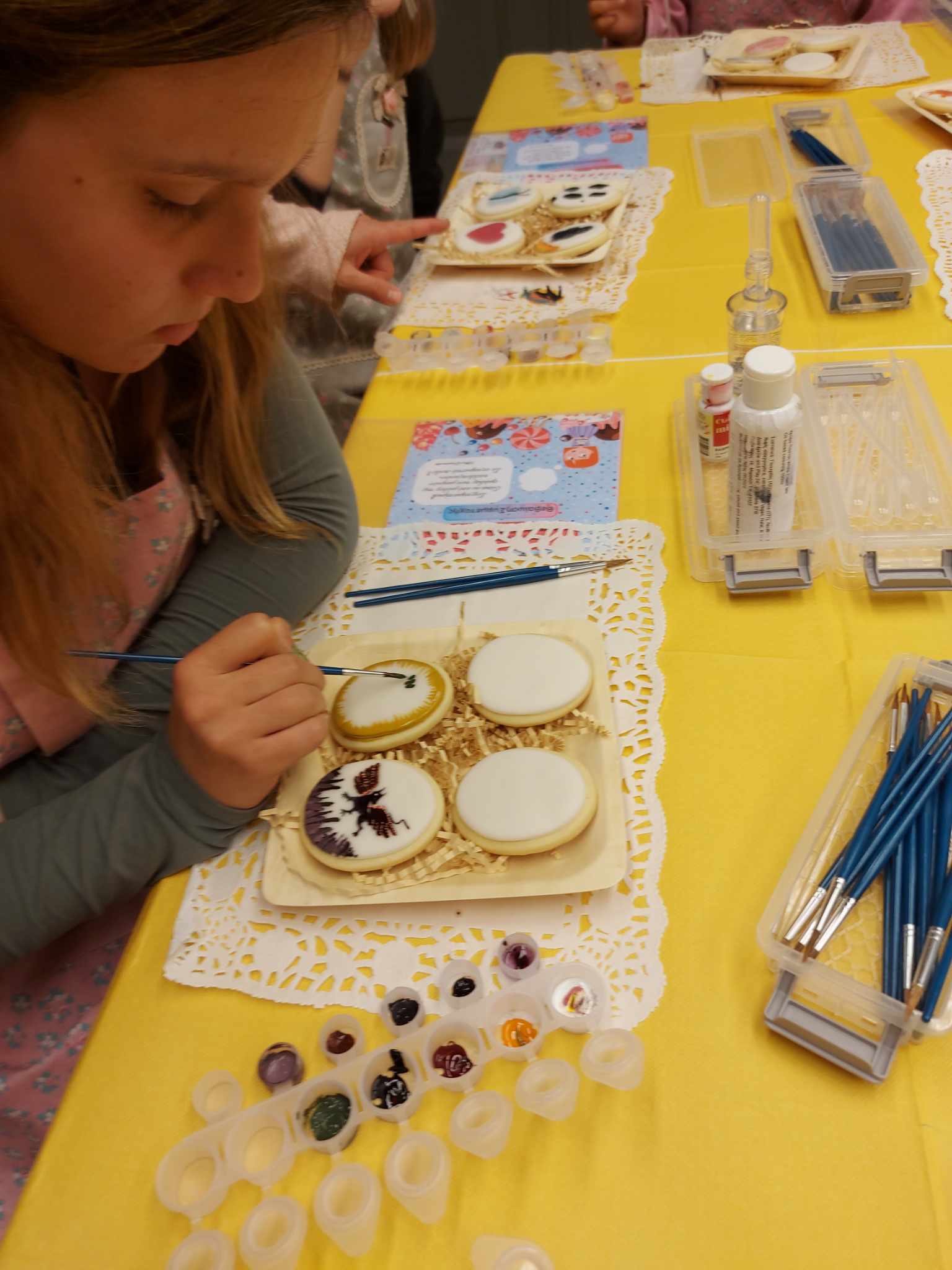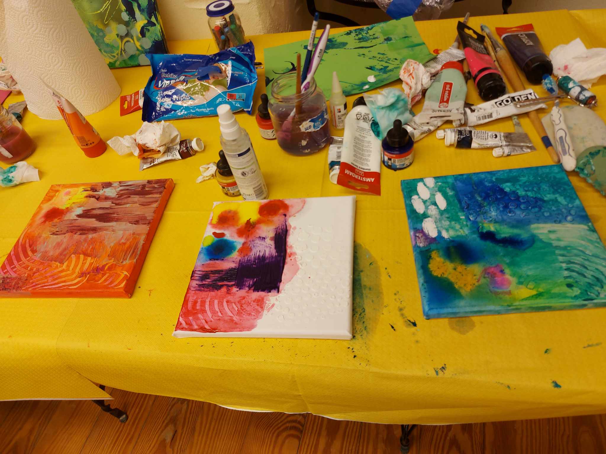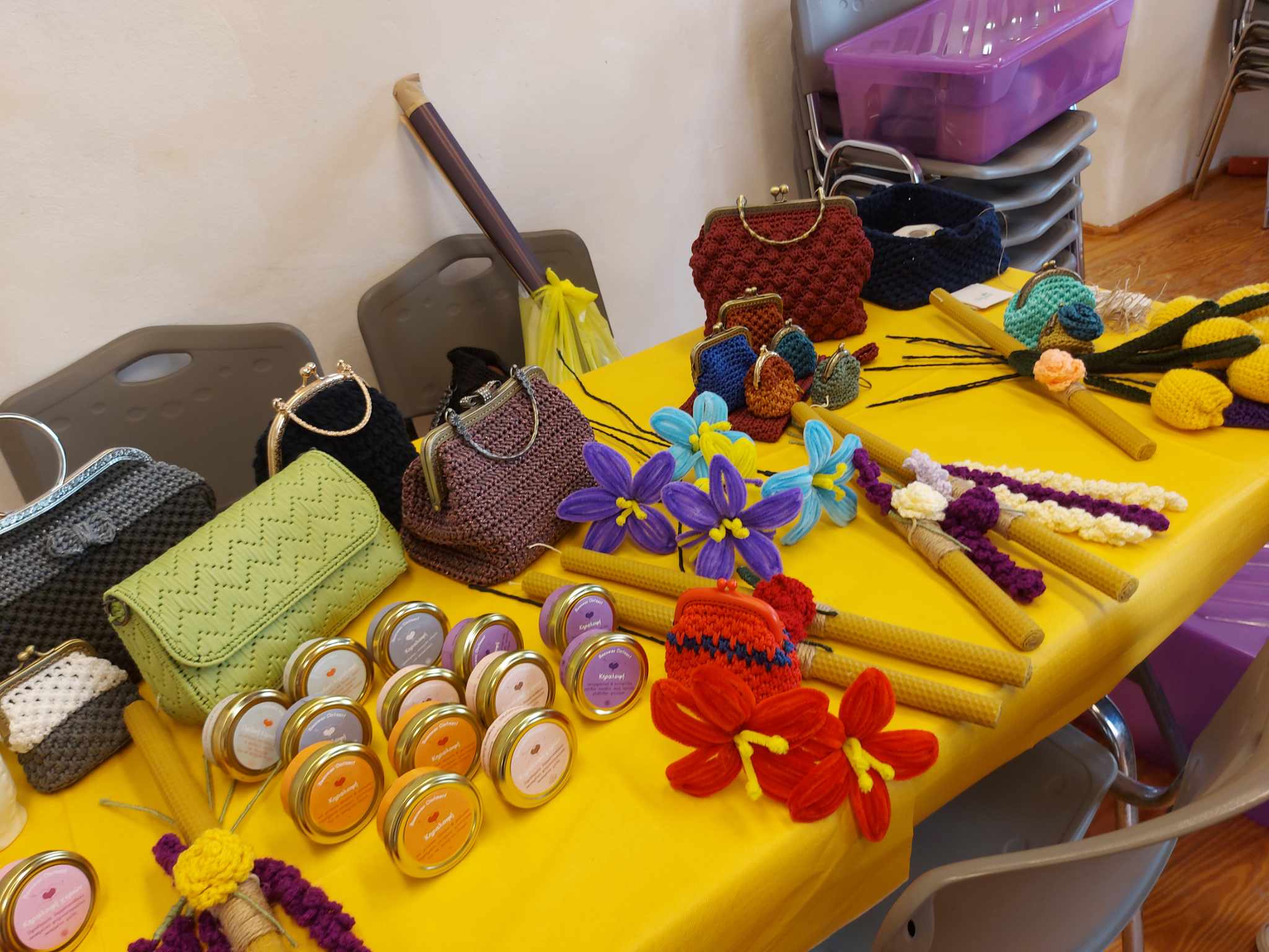 We had people who did collage, decoupage, soaps and lotions, jewelry, weaving, watercolour, mixed media, macrame, rock painting, fimo sculpture, mandalas and cookie decorating.