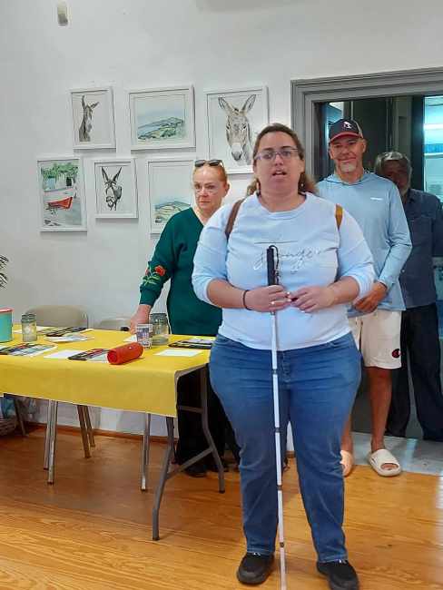 The president of AROGI gave a short talk and shared what their association does for people with sight issues on the islands and brought in some items to give people a taste of what its like to not be able to see.