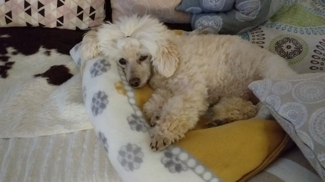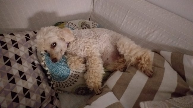 I spent the whole of last week house/dog/cat sitting where I’d spent a month a couple of months ago. It’s nice, kinda like a holiday, but I sure do miss being home. Here is Lainee enjoying lying on someone’s couch for a bit: