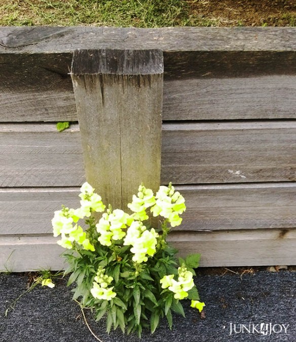There used to be a gorgeous burgundy penstemon growing where the chair (below) is but the dogs dug it up and killed it. I have another one in there now but till it grows up enough to grow through the chair like the one above, I have an old jam saucepan sitting on it.
