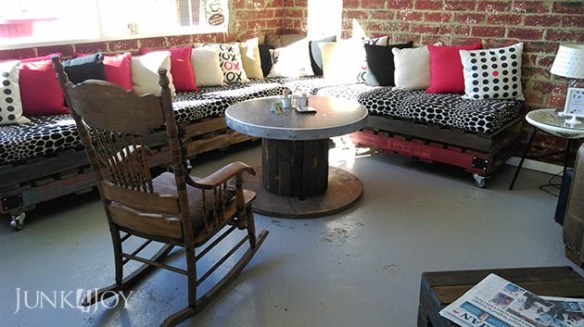 What about the pallet couch and the spool coffee table? How can you not love it?
