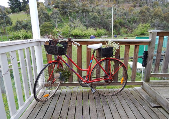 The front basket got a gaura which was growing in a pot – it was a cutting… well, a broken branch from one of the established plants. I added a bit of catmint for its trailing propteries. Both of those are doing well, though the gaura will need to be moved as its way too big for a bike basket.