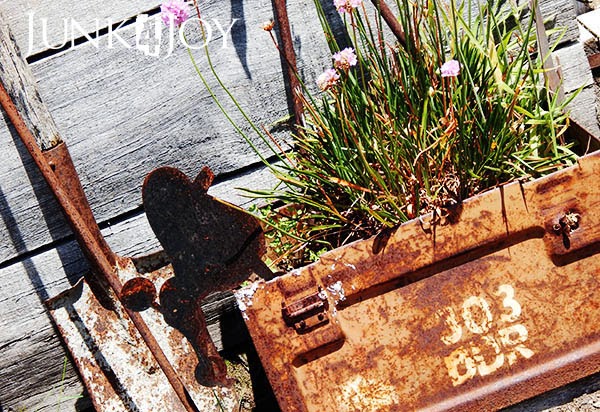 There used to be a gorgeous burgundy penstemon growing where the chair (below) is but the dogs dug it up and killed it. I have another one in there now but till it grows up enough to grow through the chair like the one above, I have an old jam saucepan sitting on it.