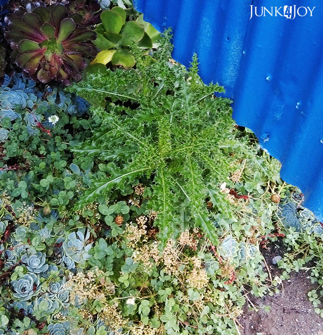 Then there’s the unwanted aliens – like this prickly customer in the middle of my succulent garden patch.