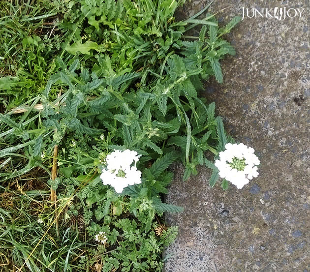 Here is one I did want. Verbena, growing on the edge of the footpath, nowhere near where it used to be in the garden bed (where it no longer is cause it all died!).