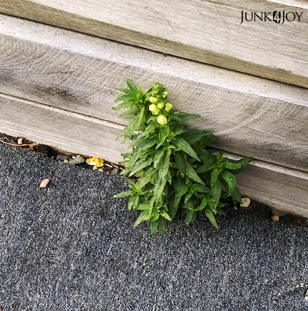 The place is a mess. Muddy and wet. Seeds I tossed out are growing and blooming between the frost bitten plants. The grass is growing and the weeds are growing faster. When walking across the yard I sometimes just can’t resist picking up the grandpa weeder and ‘just grubbing out that obnoxious weed that’s just staring me in the face, laughing at me’.