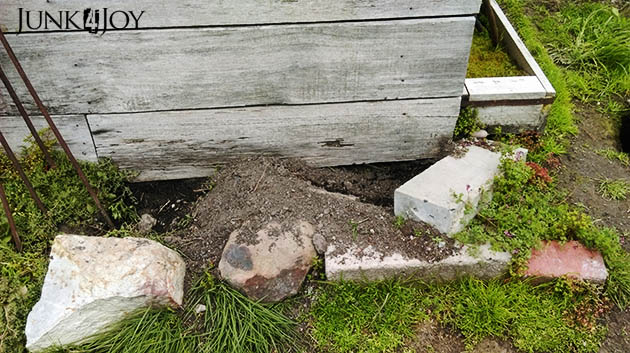 I dressed it up with a few junky planters so it wouldn’t feel so alone on the side of the woodshed. The soil there sucks, but we dug a deep hole and filled it with soil, fertilizer and manure. Fingers crossed.