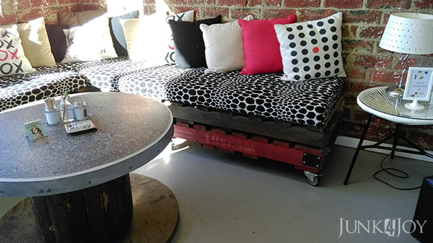 What about the pallet couch and the spool coffee table? How can you not love it?