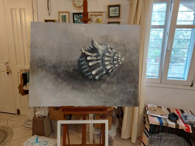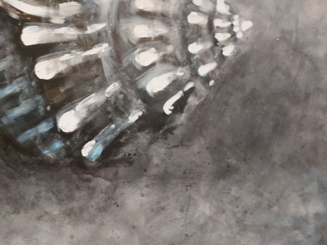 I’m pretty pleased with it. I’ve rarely worked on something this size – 120cm x 90cm. But I like it, it was fun. It was done on a recycled canvas so now I’m looking for more large canvases to recycle!