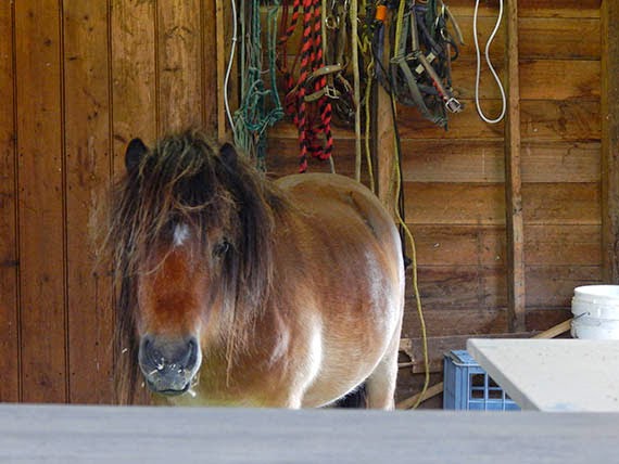 Here’s Waldo, sharing his breakfast with the chickens. I give Wally a wide berth… after the time he bit me I’m very wary of his teeth.
