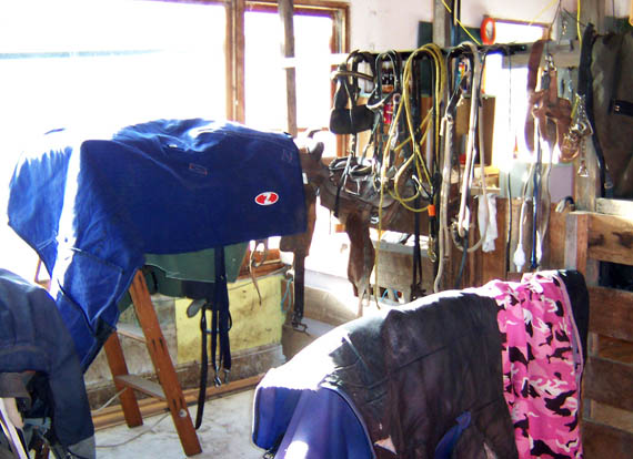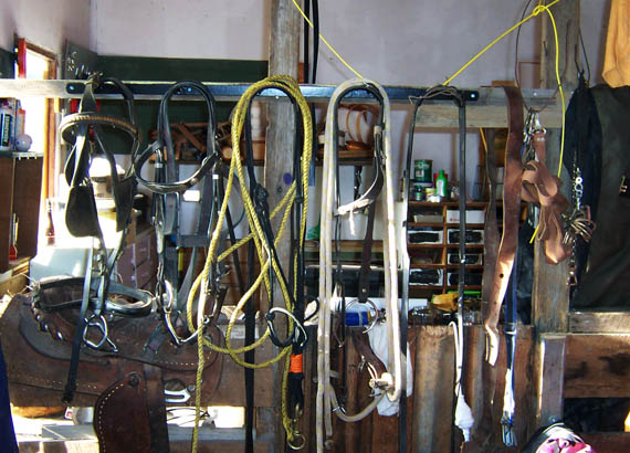 Actually I continued tackling the tack room – a job I started the weekend before. It was a mammoth task. Till now the tack had been scattered around the property: some in the small timber shed which we planned to use as the original tack room, some in the garage, some in the casita.