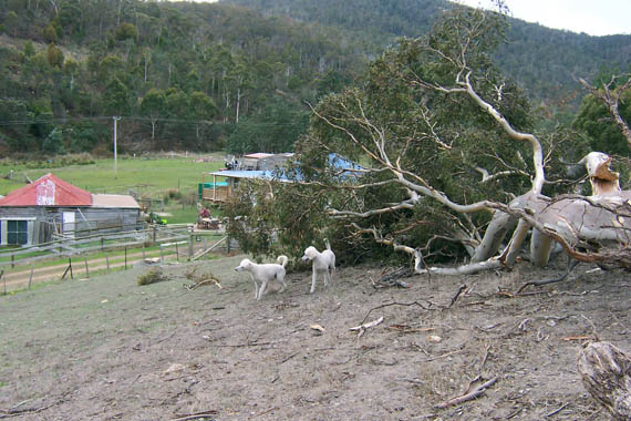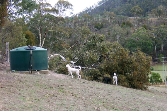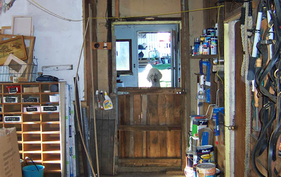 When we bought the place we replaced the sheep grid floor with flooring, which I sealed with white undercoat/sealer and never painted, and we’ve been using it for all kinds of things. There’s a toilet no one would want to use without a tetanus shot, a laundry, a chest freezer for dog food, the hydrobath and my grooming room, plus a musty dark room we avoid, a feed room for horse feed and the big room which used to be the shearing shed.