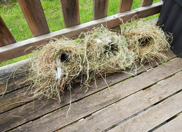 I actually had to remove them every couple of days. It took weeks for the birds who were nesting there to get tired of rebuilding and go elsewhere.