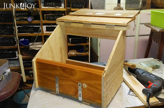 Since the outside of the box had already been painted, I just gave it one coat of house paint to freshen it up. Then I decided the inside needed painting too.