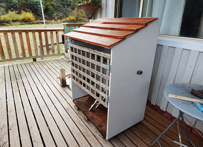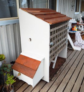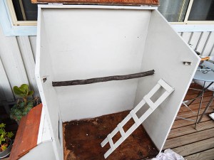 I’ll be putting a bolt onto the gate at #1, put a hole into the aviary wall for the bolt to slide into.