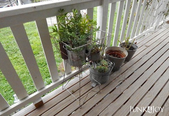 The frost damaged quite a few of my succulents but most are coming back since I moved them onto the porch. I found this little shop basket at the tip shop a while ago and am using it to hold some of my plants.