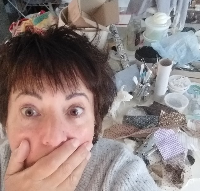 You’d never guess it, but that’s my dining table behind me. Buried under all that STUFF.