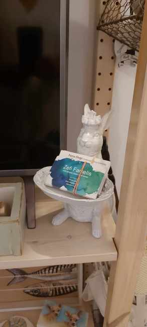 I got this cute bunny on Temu that I spray painted white (cause he’s much cuter like that). He now sits near the front door holding my business cards.