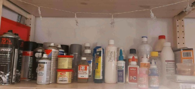 There is always a ton of stuff in jars and bottles you can’t put in drawers or boxes. I have a shelf dedicated to that.