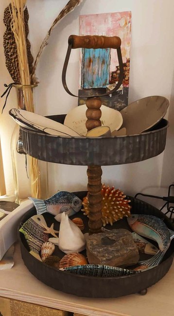 On the other side of the TV is this lovely galvanised caddy I bought (you guessed it!) on Temu. For now it holds some odds and ends on display, but one day it will have a higher purpose!
