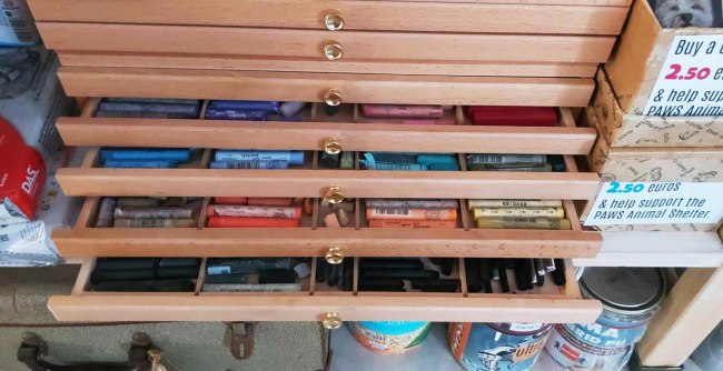 I had planned this post to just be a rave about the new art supply drawers I bought on Temu. I am so happy with it! It fit in all my pastels, including an unopened box and some packs of willow charcoal I had stuffed here and there.