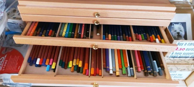 It even had room for my pencils – watercolour pencils, pastel pencils and ink pencils. All in one place now. Which means I now have some empty jars to spread out my paint brushes and other tools…