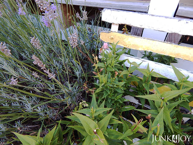 When pulling weeds I dug up and added some alysum. Love that stuff. It grows anywhere – my kind of plant – and looks like clouds of white fluff.