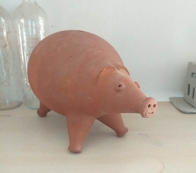 My good friend Valerie bought me this maimed ceramic piggy bank when we were looking at secondhand furniture at a shop nearby. I fell in love with his cute little face and the fact that, without ears) he looked more like an aardvark than a pig.