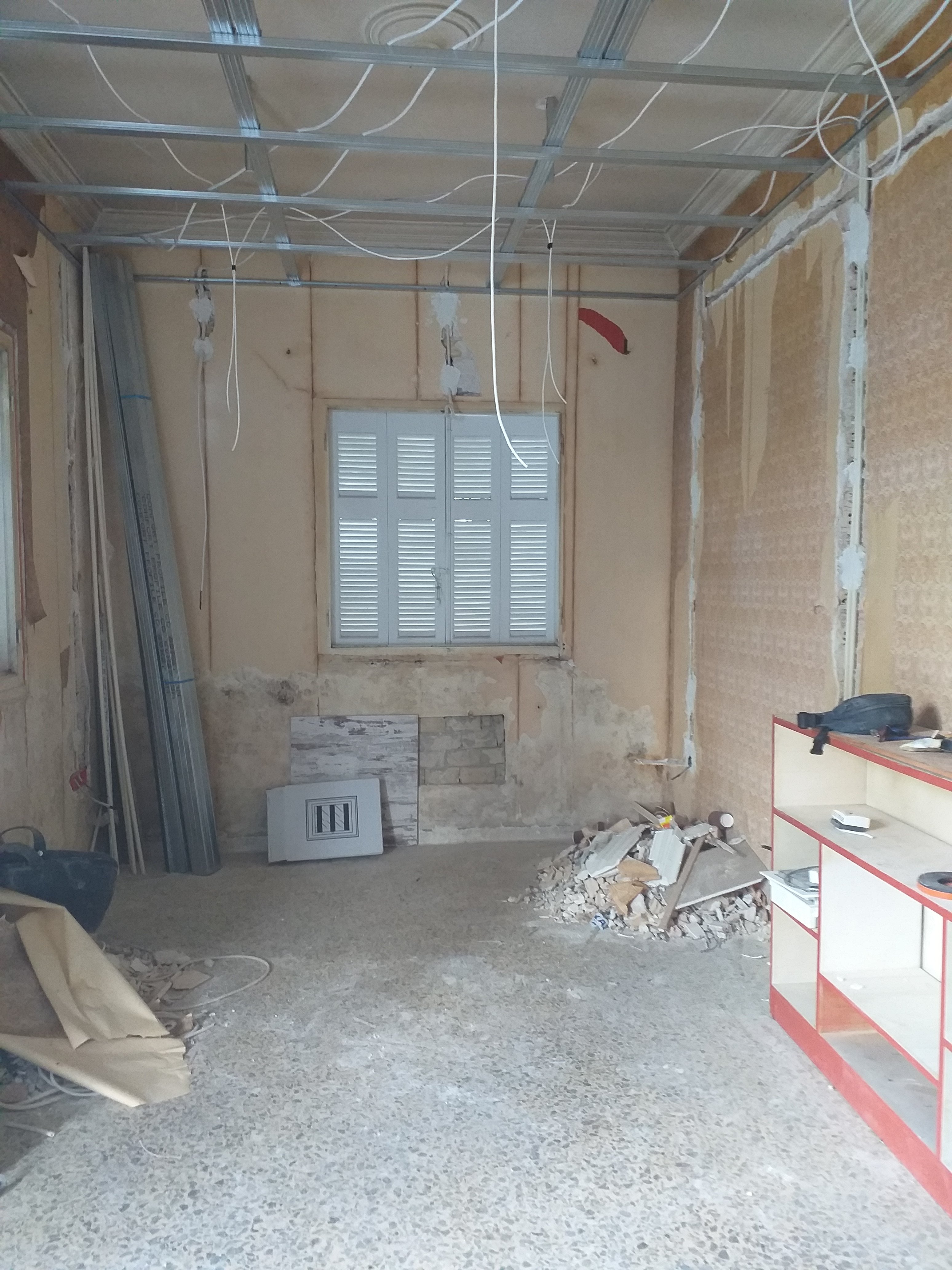 Here are some pics of the progress so far: most demo has been done, old wardrobes and kitchen ripped out, electrical cables in place.