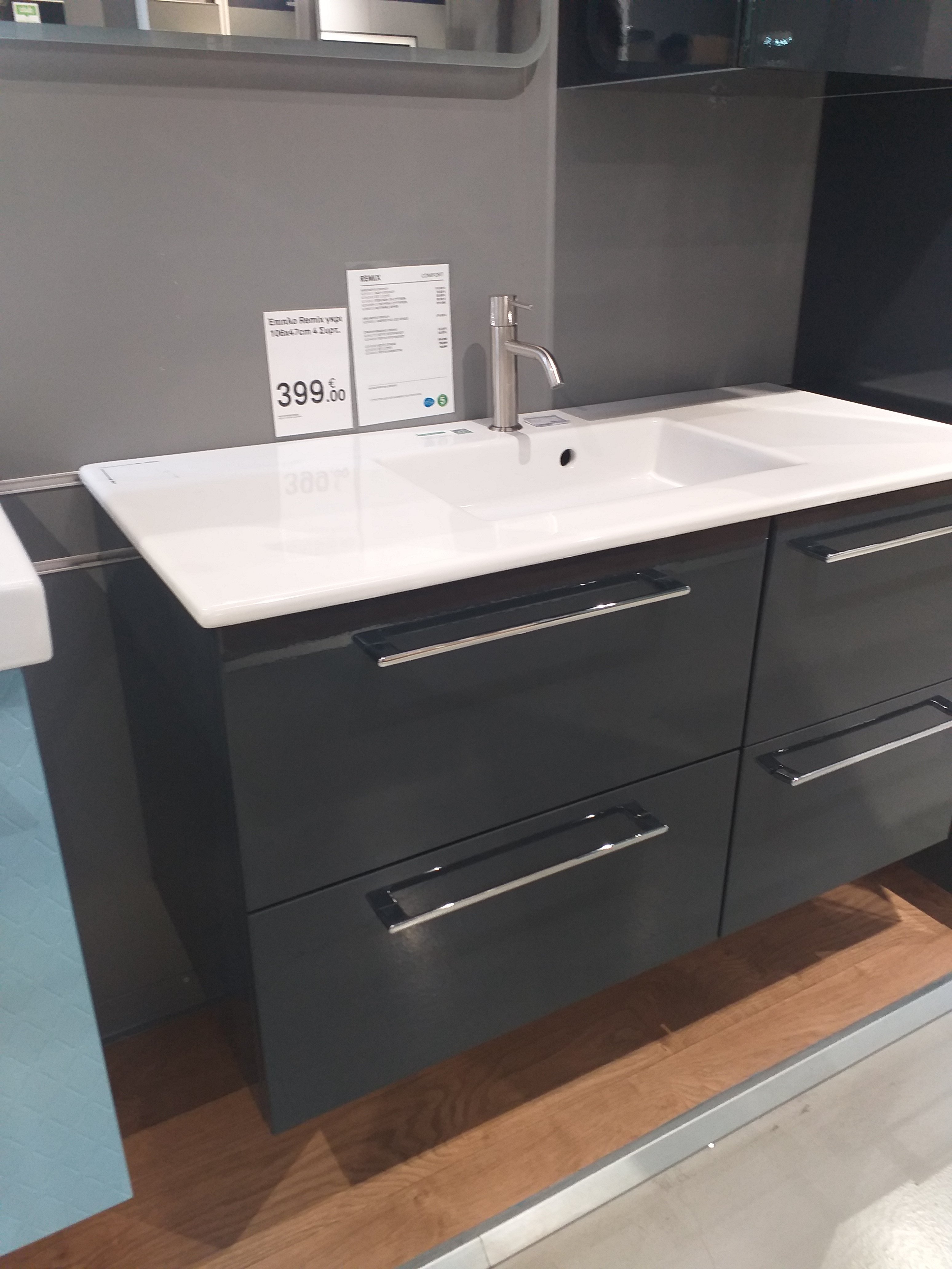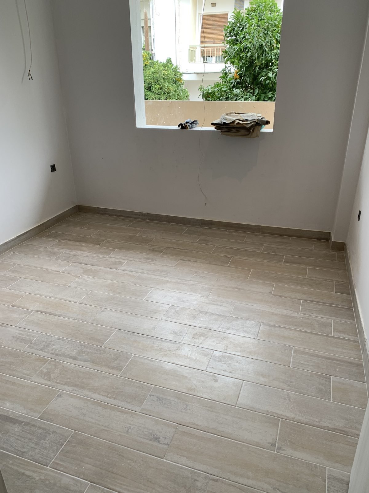 The balcony door from the new kitchen.The cute balcony which opens up to the small garden – the main reason I loved the kitchen to the front of the house.The wardrobe recess which I am including in the kitchen to take advantage of a bit of extra space.The living room.The main bedroom.My floor tile choices – I’m going with the bigger/lighter floor tile throughout and the matt white wall tiles in the bathroom.This is the vanity/sink I like. I like the green but it will be rather limiting in accessory colours.My first choice is the dark grey. Very classy. I think white would be too stark with the pale grey tiles and the white walls.