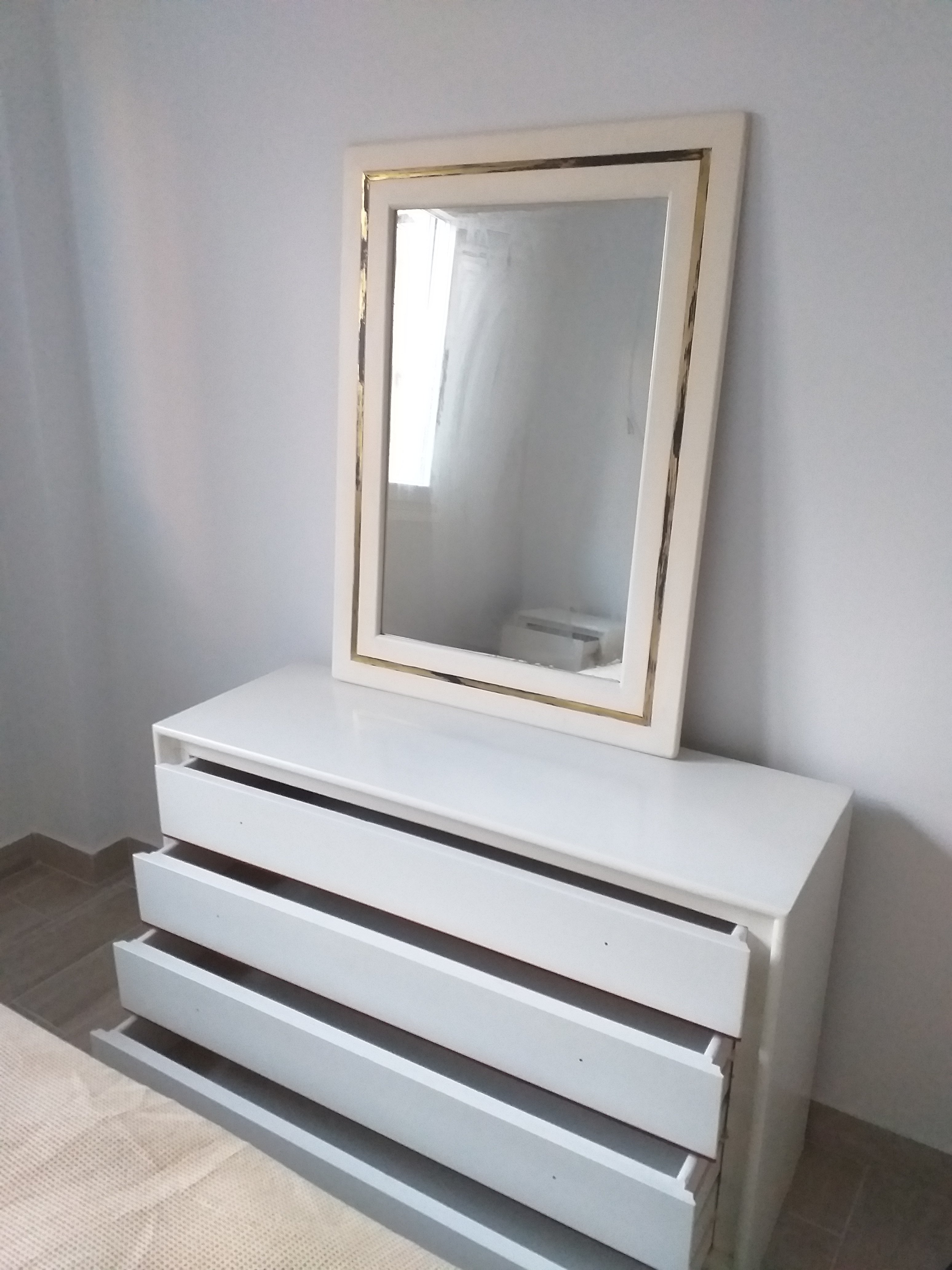 The mirror is currently undergoing its own makeover. Meanwhile today I found and bought the castor wheels I wanted to put under the bedside tables so that mom can easily move them out of the way when she wants to get into the underbed drawers. That’s on tomorrow’s to do list.