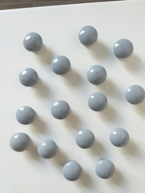 Since I decided to add knobs to the bedsides tables and chest of drawers – 14 of them – I had to find something cheap. After looking all over the place I found some small wooden knobs for 1.50e for a pack of 4. Perfect price, not ideal in the looks department.