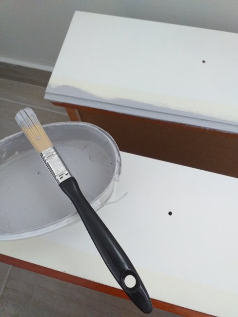 Out came the grey paint. This time I used a slightly lighter version of chalk paint I had on hand.
