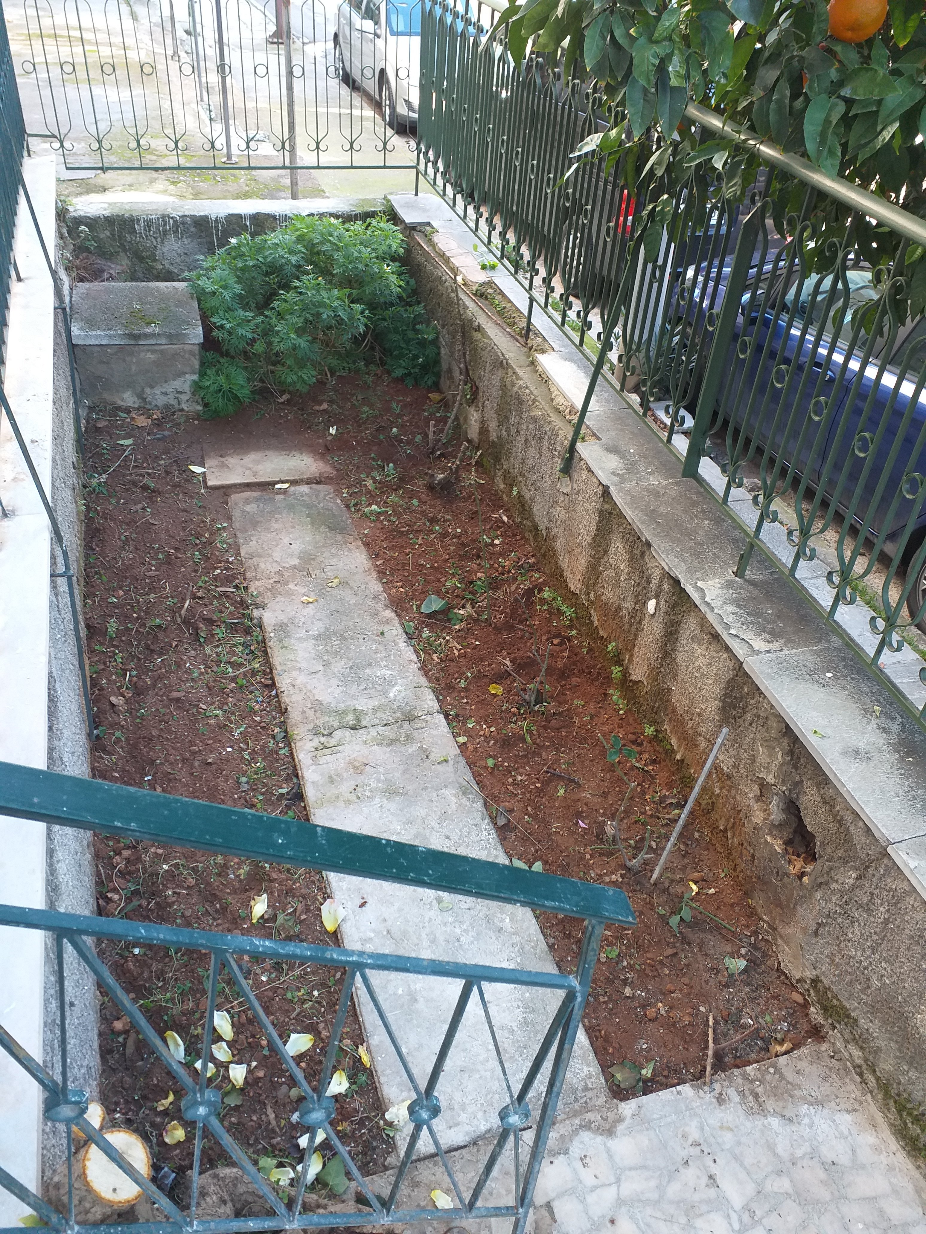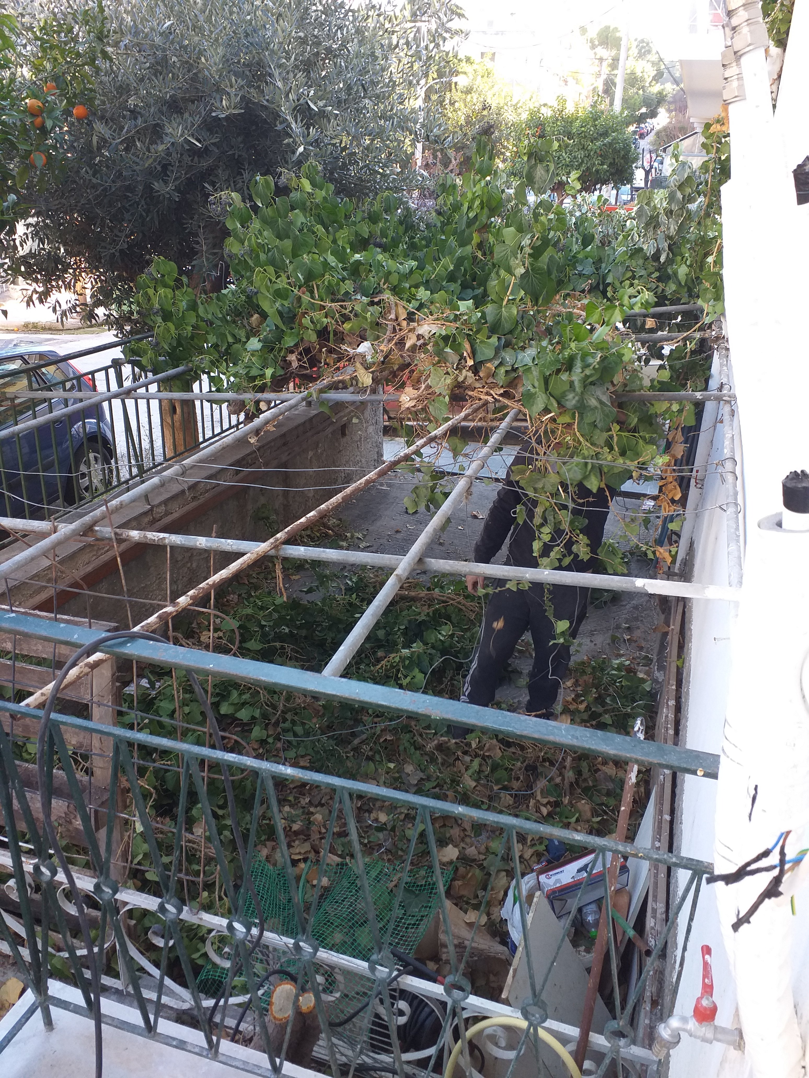 While fighting ivy, a gypsy drove by shouting out about taking away old metal things people don’t want so I called him over. We get that a lot here. Guys in trucks and utes go around neighbourhoods playing recordings saying they will clean out basements, rooftops, yards etc and take away anything you don’t want. Some will take furniture and just about any household items. Others will only collect metal. Sometimes they charge you for doing it, other times they will only take things which have resale value for them. The guy today took some old metal chairs I needed to get rid of, some old radiators, some odds and ends, plus the bags and boxes I’d already put on the staircase.