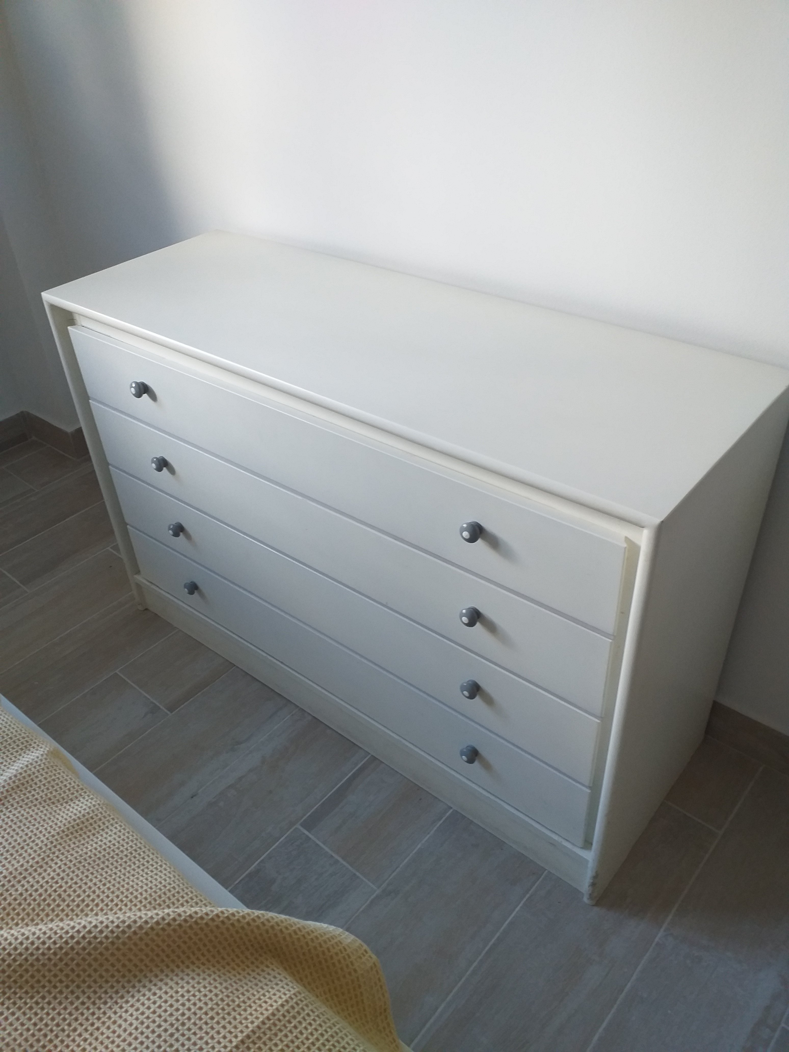 And now, despite minor chips and scuff marks which stubbornly won’t come off, we have cuter bedroom furniture for mom! (Ignore the throw over the bed, its to keep dust off the mattress.)