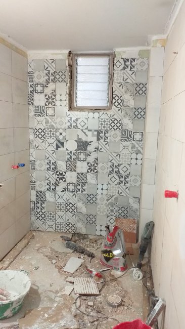 When we started it dragged on, mainly cause I got the plumber to do the tiling and it turned out he’s a great plumber but not such a great tiler. It took forever. In the end I just wanted him gone so I opted to finish the room myself.