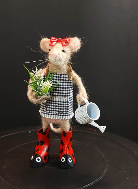 A little gardening mouse in her ladybug boots.