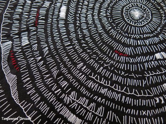 This is how it looks after about 4 sessions of stitching, maybe 5… and there’s still a blank spot on the right where I’m not sure if I’ll fill it in entirely or just scatter more french knots.